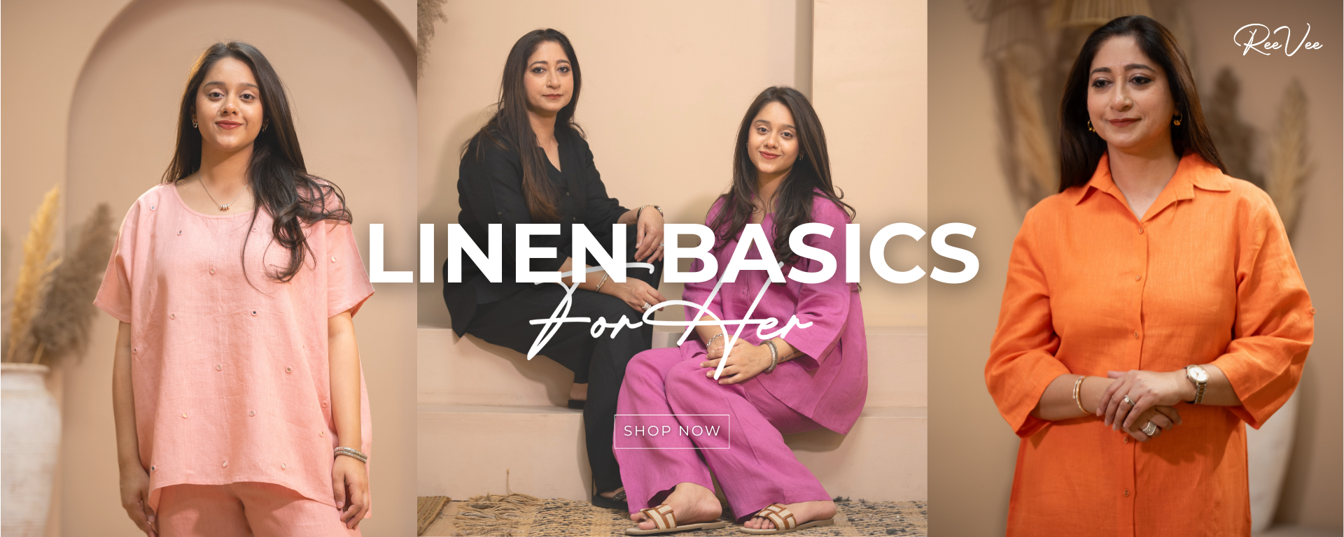Reevee crafts timeless 100% European linen pieces—breathable, natural, and consciously made in our family-run Delhi/NCR workshop.