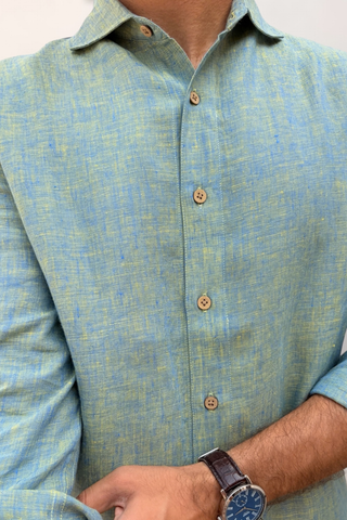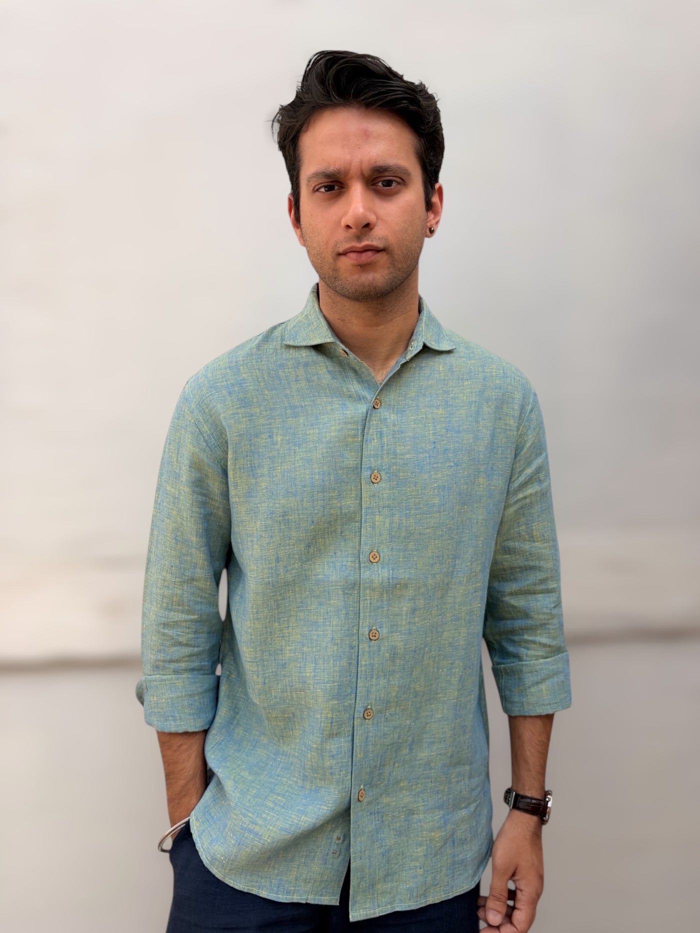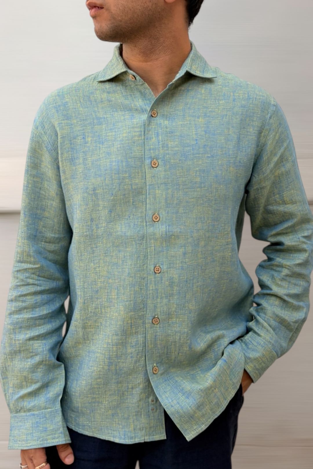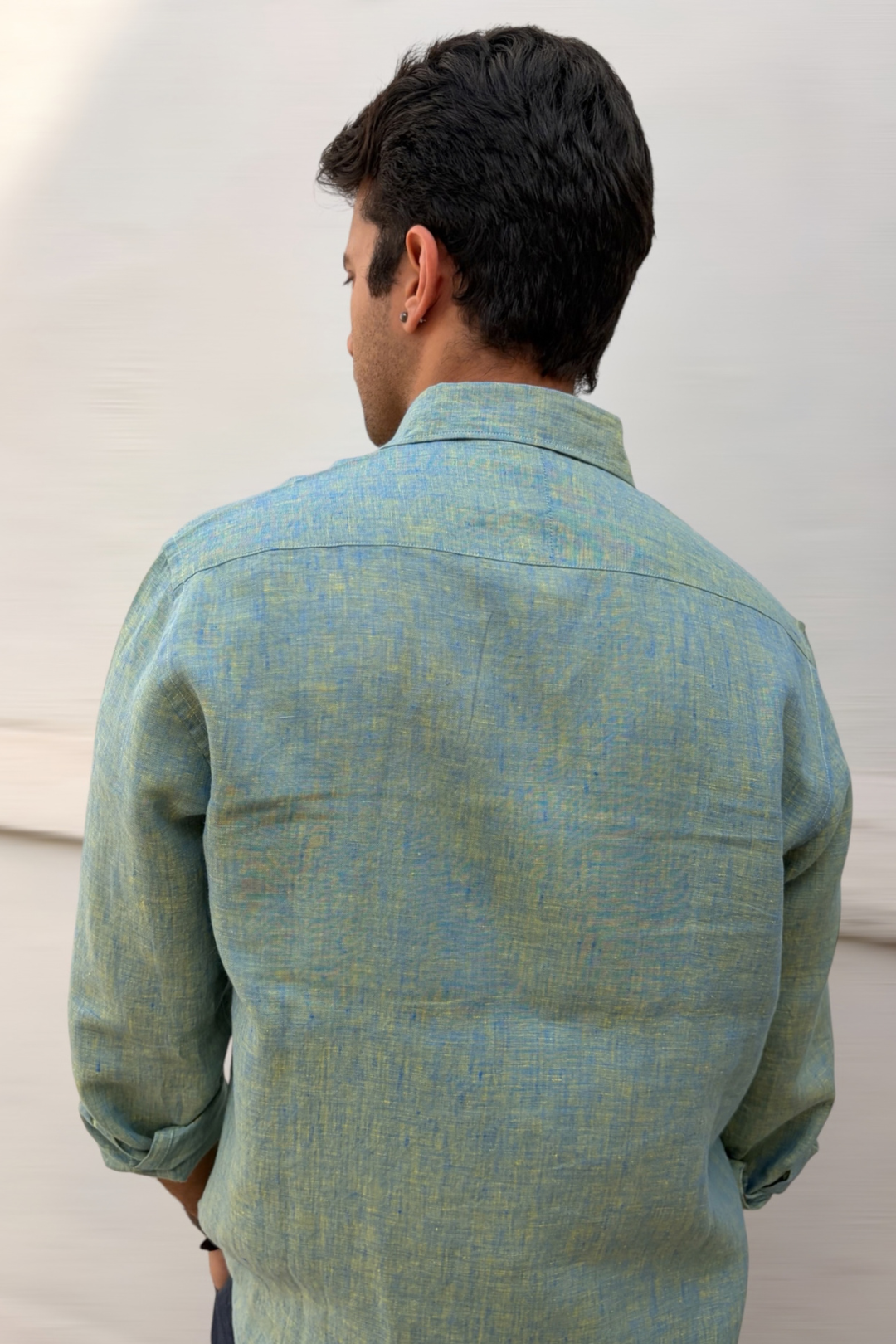 Swirl Melange Linen Shirt in Wild Sage Sale