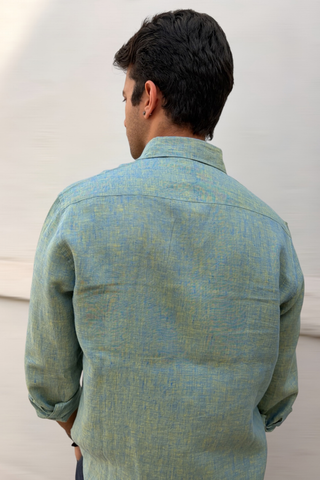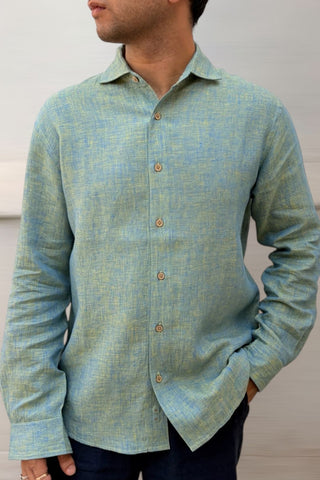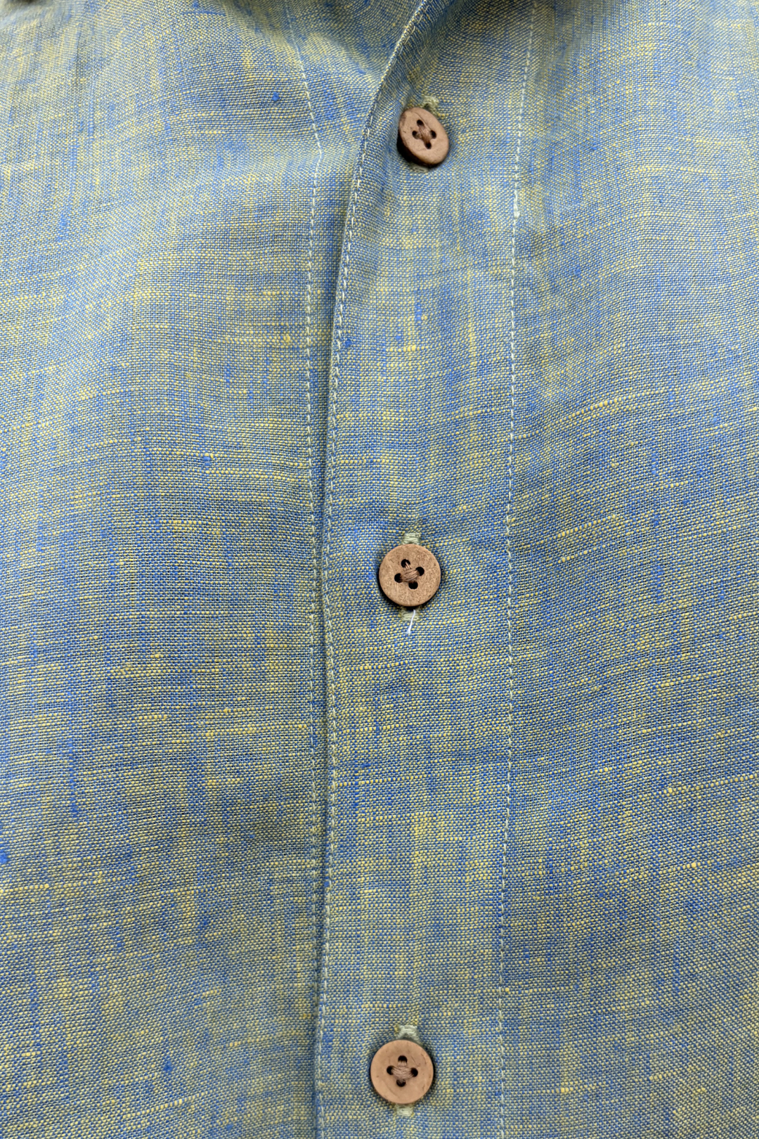Textured linen shirt with a distinctive two-tone weave, designed for relaxed, everyday refinement.
