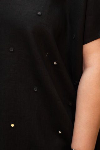 This airy top features delicate mirror work embroidery scattered across the front, adding subtle shimmer to a clean, structured shape.