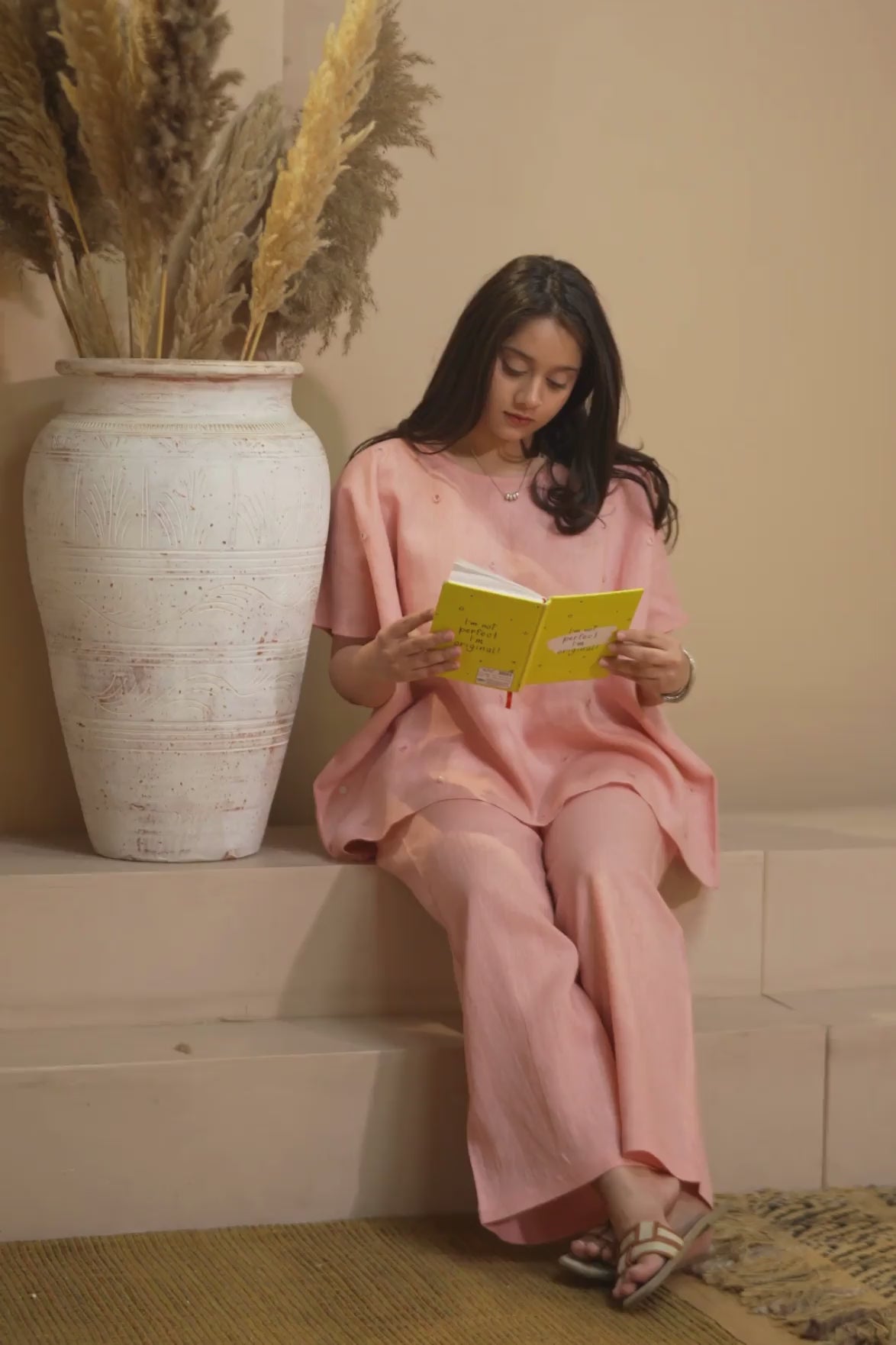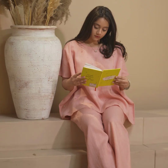 Noor, meaning “light” in Arabic, captures the essence of this piece: soft, radiant, and quietly captivating. With its boxy fit, round neckline, and short sleeves, it’s designed for comfort and style — perfect for warm-weather ease or layering under oversized outerwear.Pair it with our Sora Pants for a refined co-ord look that balances movement, elegance, and modern craft.